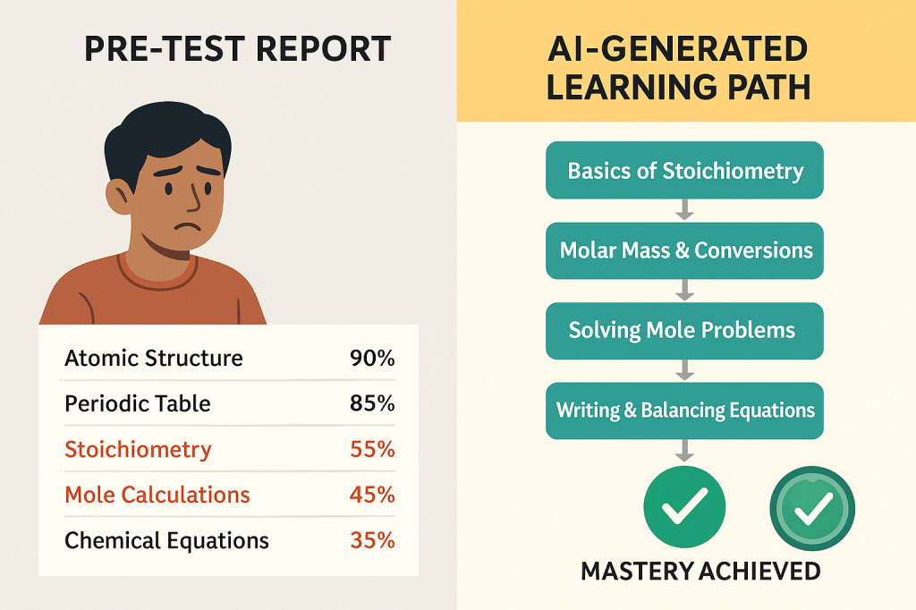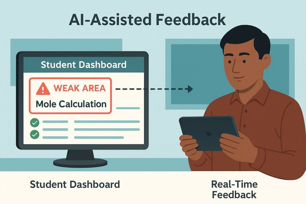 • উদাহরণ: রসায়নে যদি কোনো শিক্ষার্থী বারবার mole calculation ভুল করে, সিস্টেম সেটিকে চিহ্নিত করে শিক্ষককে সতর্ক করবে।