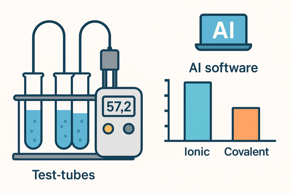 উপকরণ: ৩–৪টি অজানা দ্রবণ, কন্ডাক্টিভিটি প্রোব/মিটার, AI চার্ট-মেকার।