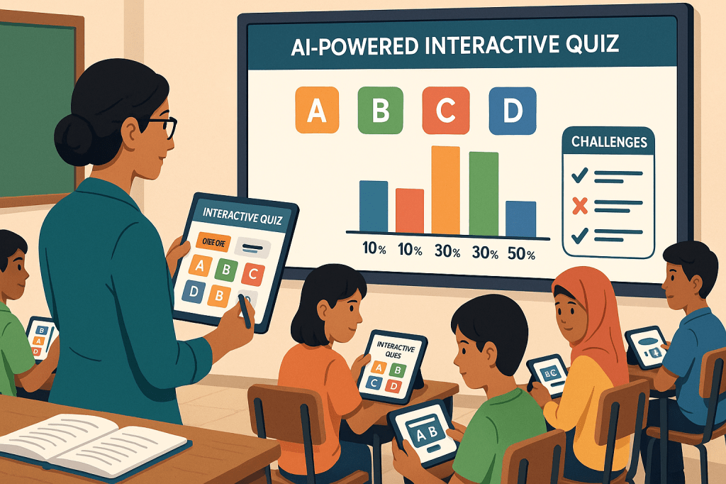 • উদাহরণ: শিক্ষক AI টুলের সাহায্যে একটি ইন্টারেক্টিভ বিজ্ঞান কুইজ তৈরি করতে পারেন যা পুরো ক্লাসে ব্যবহারযোগ্য।