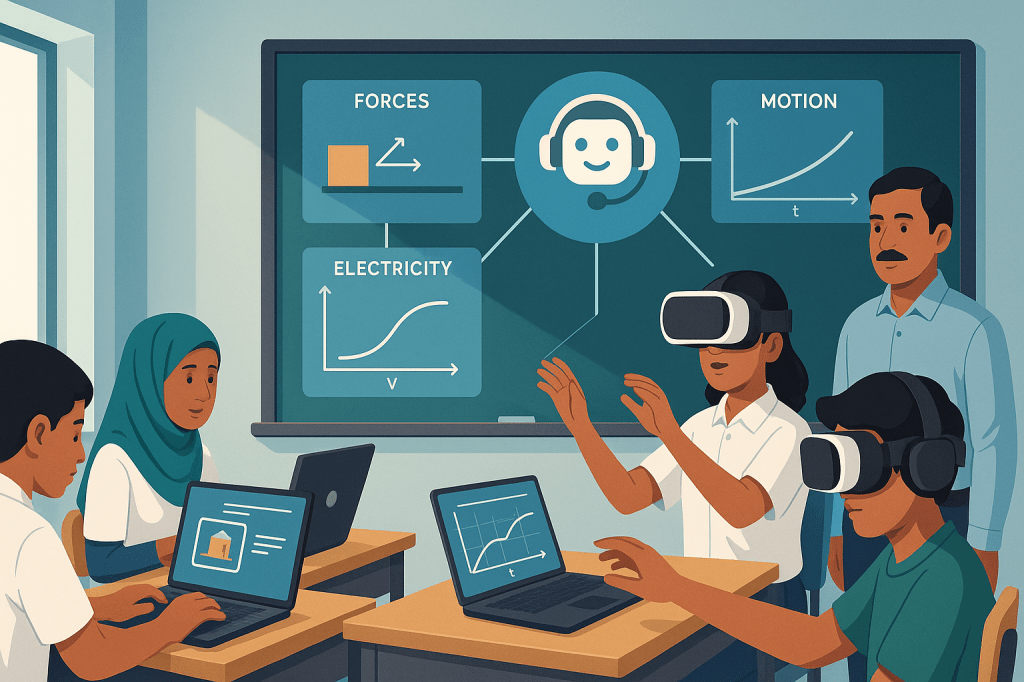 • ধারণাগত শিক্ষা: বল ও গতি শেখাতে PhET Simulation বা AI-ভিত্তিক ভার্চুয়াল ল্যাব ব্যবহার করা যায়। শিক্ষার্থীরা বল প্রয়োগের মাত্রা পরিবর্তন করে সরাসরি গতি পরিবর্তন দেখতে পায়।