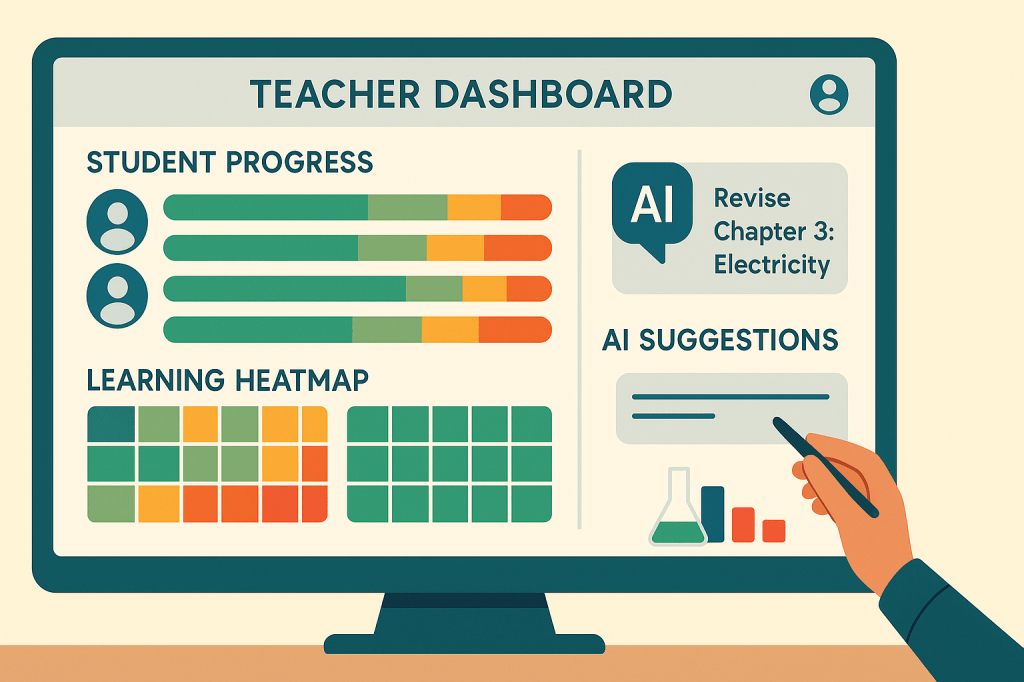 • AI শিক্ষকের সামনে শিক্ষার্থীর শেখার অগ্রগতি ড্যাশবোর্ড আকারে দেখায়।